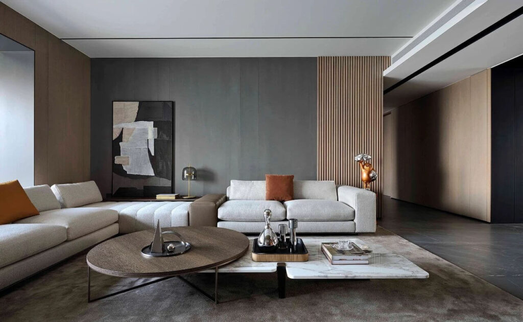 7.When combined with grooved timber wall panels, they achieve a stunning layered effect, enhancing visual depth and creating a high-end atmosphere.